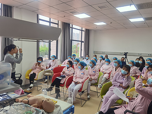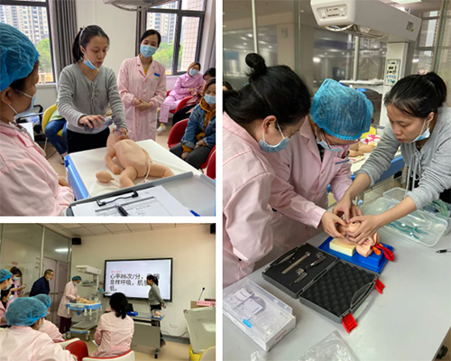 培训班分为理论授课和模拟实操两个部分。陈衍晨老师结合自身丰富的临床经验,从新生儿复苏准备、初步复苏、正压通气、药物使用等方面进行理论介绍,把先进的前沿知识传授给学员。其深入浅出的讲解方式,让现场学员对新生儿复苏有了更深刻的认识,为日后在临床实践打下坚实的理论基础。