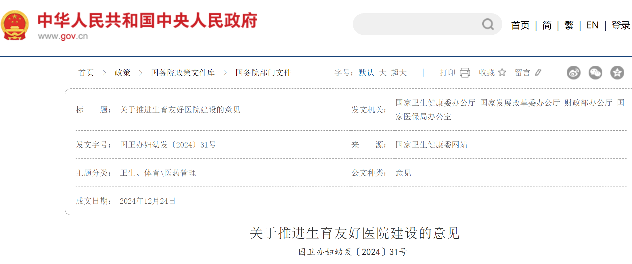 从政策层面来看,国家卫生健康委等四部门联合发布的《关于推进生育友好医院建设的意见》承载着时代使命。这一政策旨在为育龄妇女提供全流程、高质量的生育医疗保健服务,从孕前准备、孕期呵护,到分娩保障和产后照护,每个环节都体现对生育群体的深切关怀。这一政策是国家应对人口变化、推动人口高质量发展的重要举措,为生育友好型社会奠定基础。